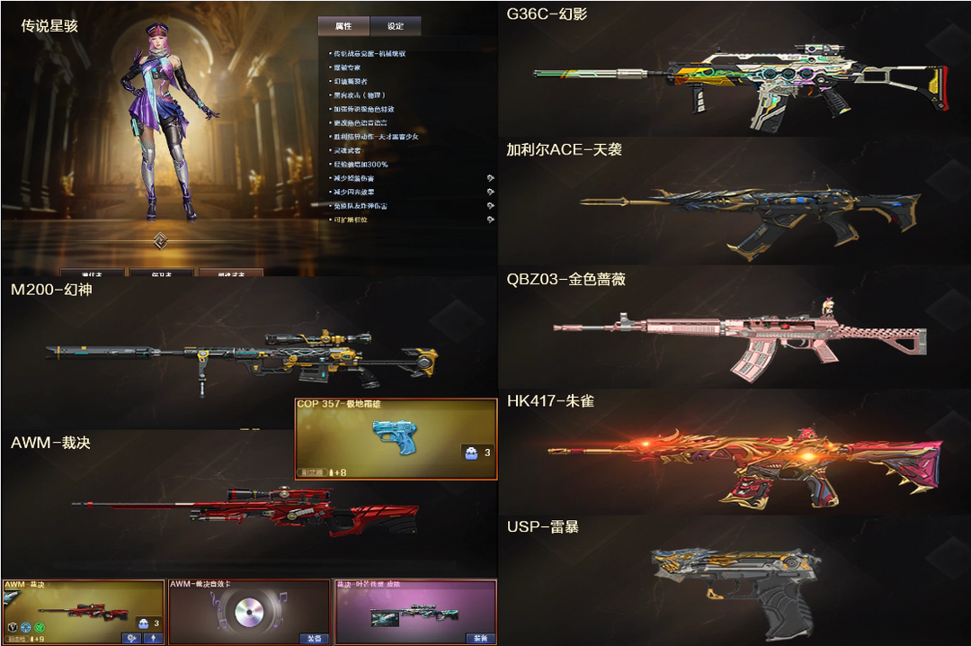 传说星骇3防❤幻神+裁决叶芒苍灵音效卡❤QBZ蔷薇幻影天袭朱雀+USP雷暴COP❤炼狱蝴蝶4烈龙