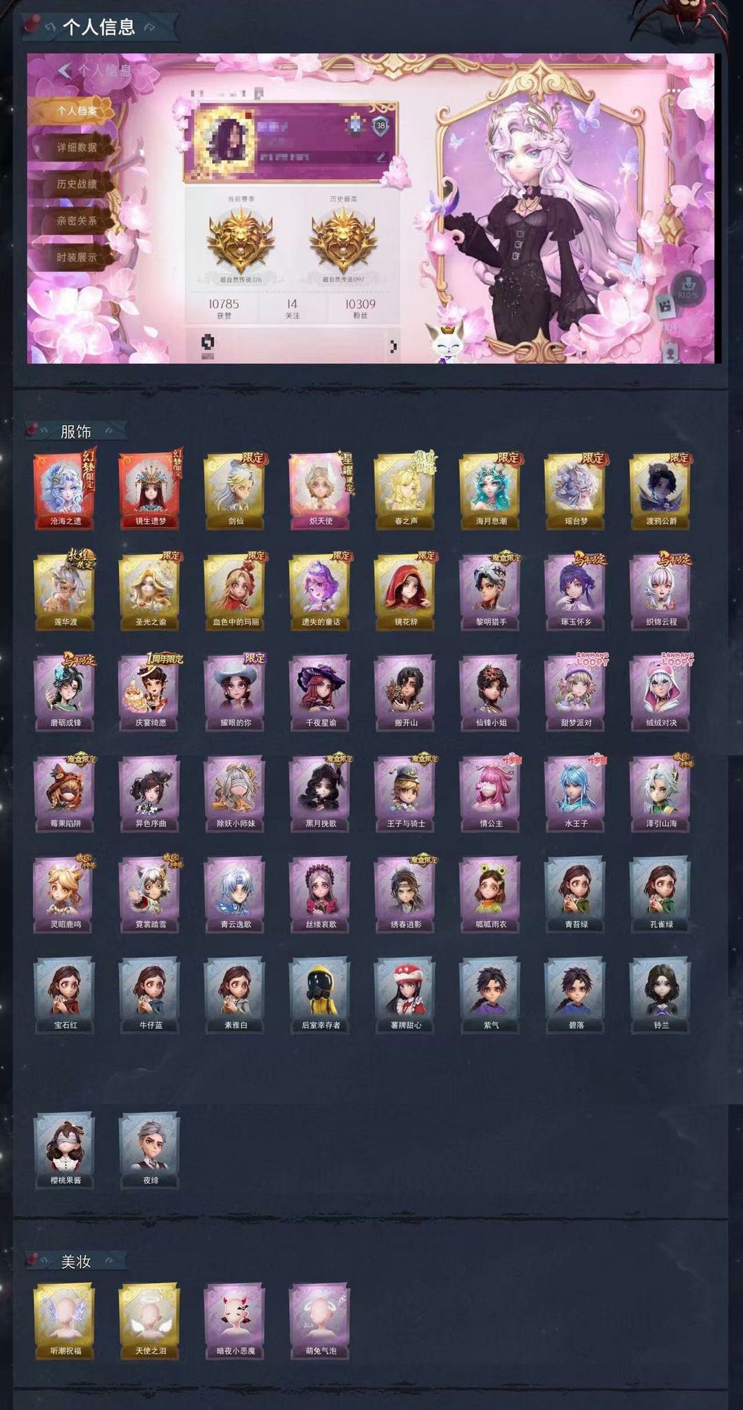 万粉伪全图鉴✨2红1粉10金25紫✨【新品热门沧海之遗✨莲华渡✨血色中的玛丽】✨超多皮肤✨满氪条✨
