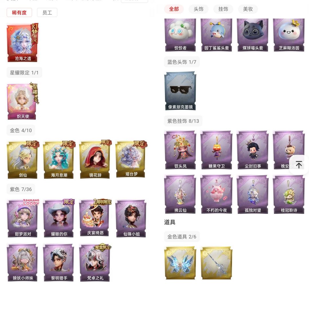 1粉1红4金7紫49道具♥沧海之遗♥炽天使♥瑶台梦♥剑仙♥梵卓之礼♥晶澜灵翼♥绮想花园涂装♥