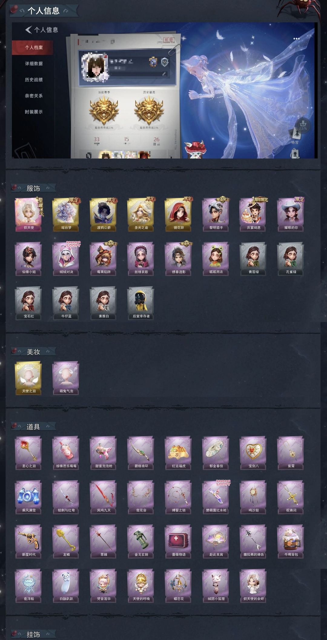 星耀1耀世4典藏9,道具皮31,小黄-炽天使,莉莉-瑶台梦,零-渡鸦公爵,薇薇安-圣光之谕,巫铃儿-