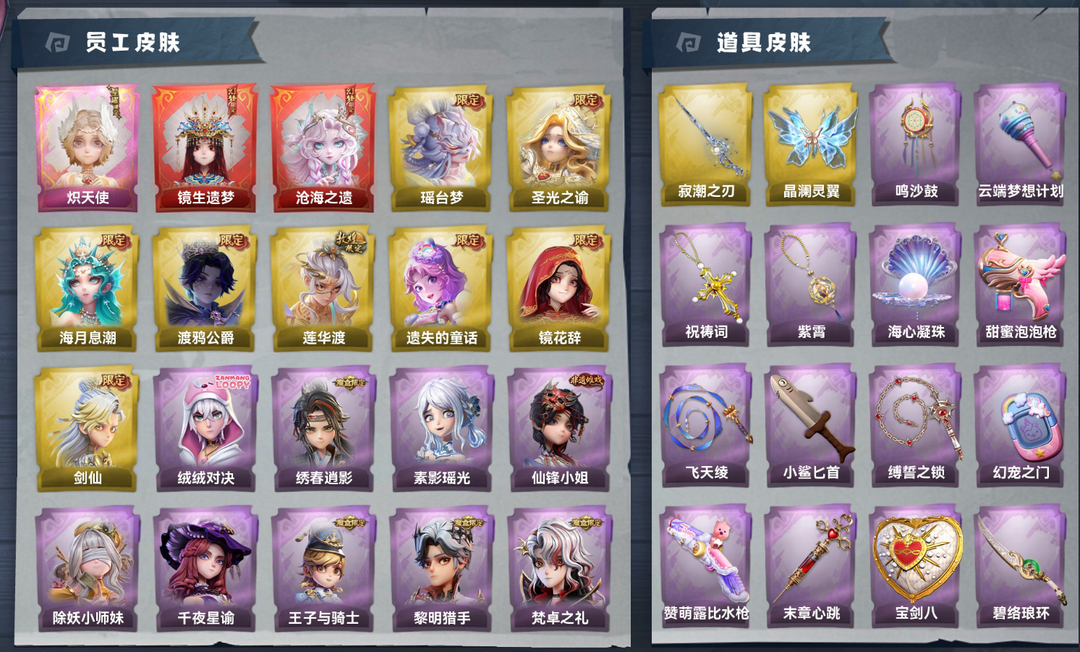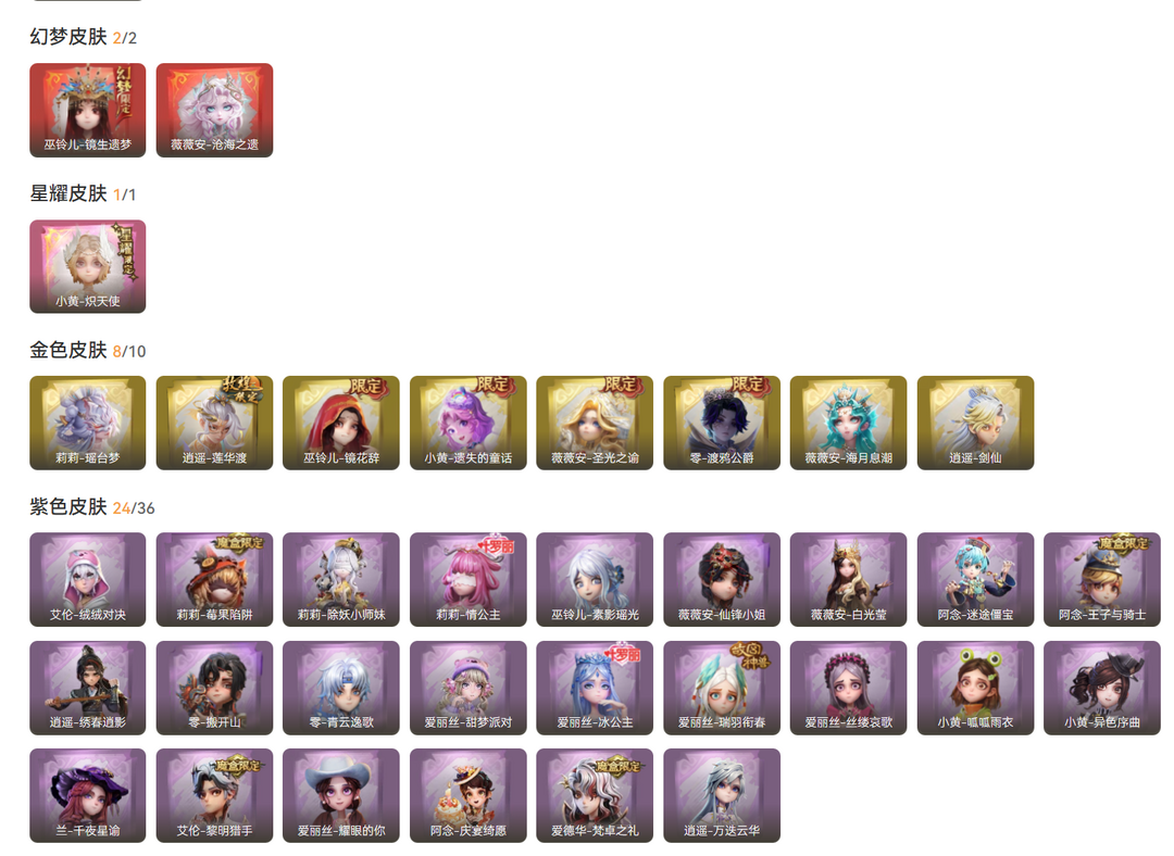 2红1星耀8金27紫皮/镜生遗梦/沧海之遗/炽天使/剑仙莲华渡圣光之谕/镜花辞渡鸦公爵瑶台梦海月息潮