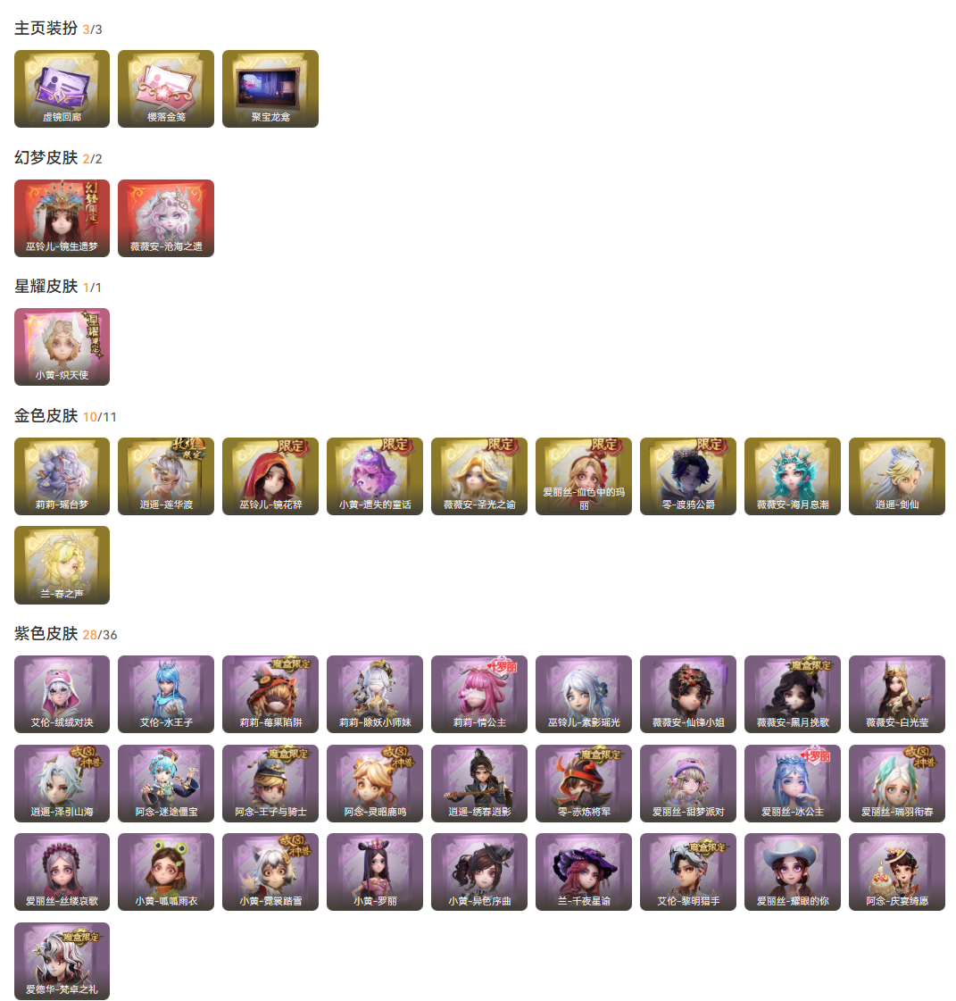 万氪✨满图鉴✨3红10金28紫✨非遗皮沧海之遗✨剑仙✨莲华渡✨瑶台梦✨春之声✨血色中的玛丽✨赤炼将军