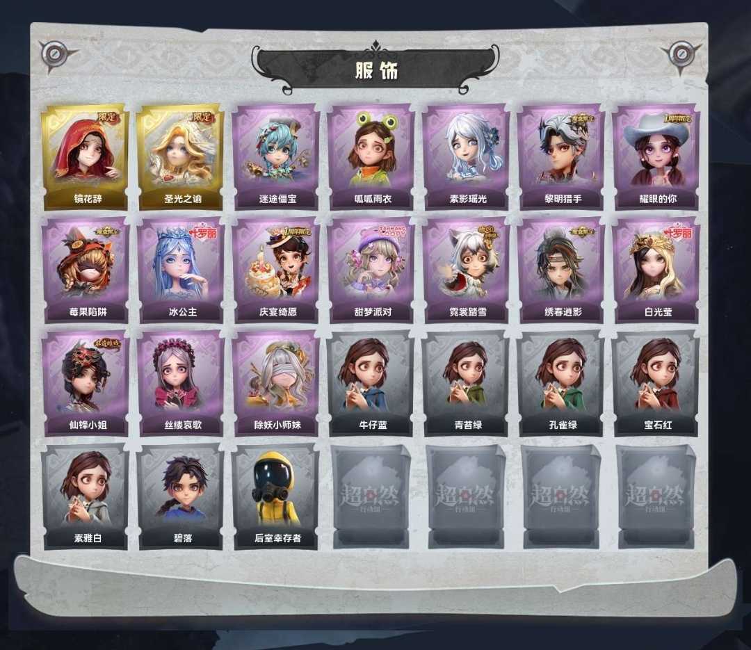 2金♉15紫♉镜花辞♋圣光之谕♋莓果陷阱⛎冰公主⛎甜梦派对♑霓裳踏雪♑白光莹♉仙锋小姐♉除妖小师妹
