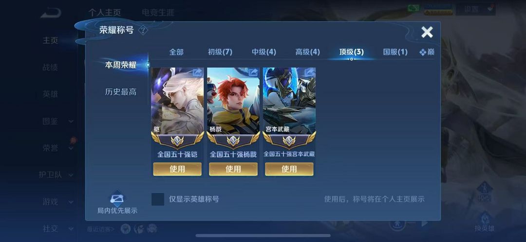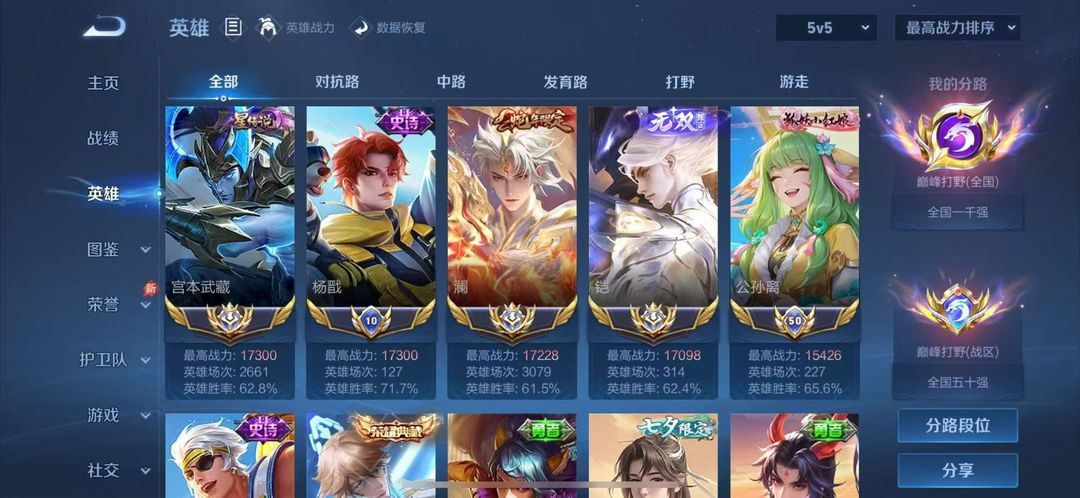 限制: 租号5次及以上 |巅峰千强200名框⭐4月正式服在榜国服铠⭐在榜国11宫本武藏杨戬⭐超多省级限定皮肤⭐可排位禁巅峰