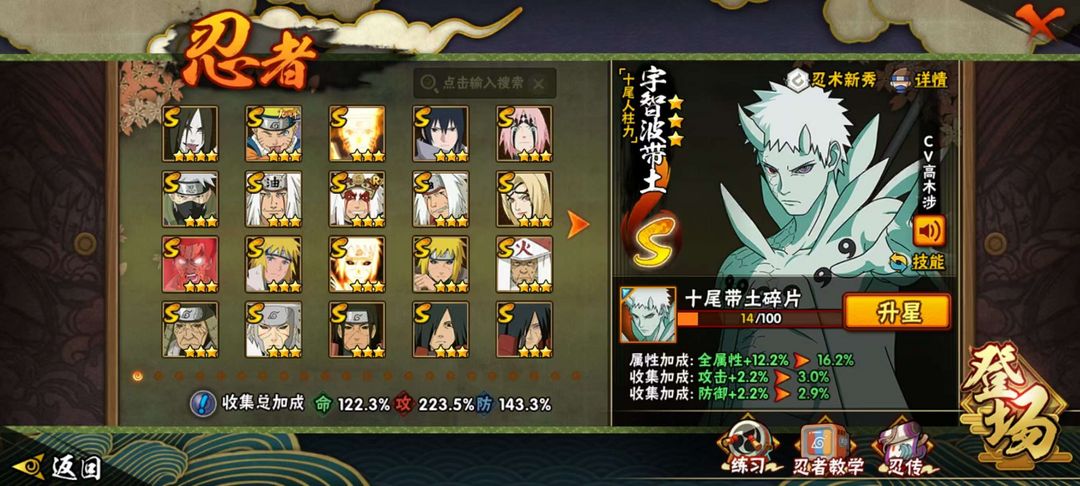 全高招号十尾带土,,200多个忍者,v12,此号只是偶尔玩,便宜租了