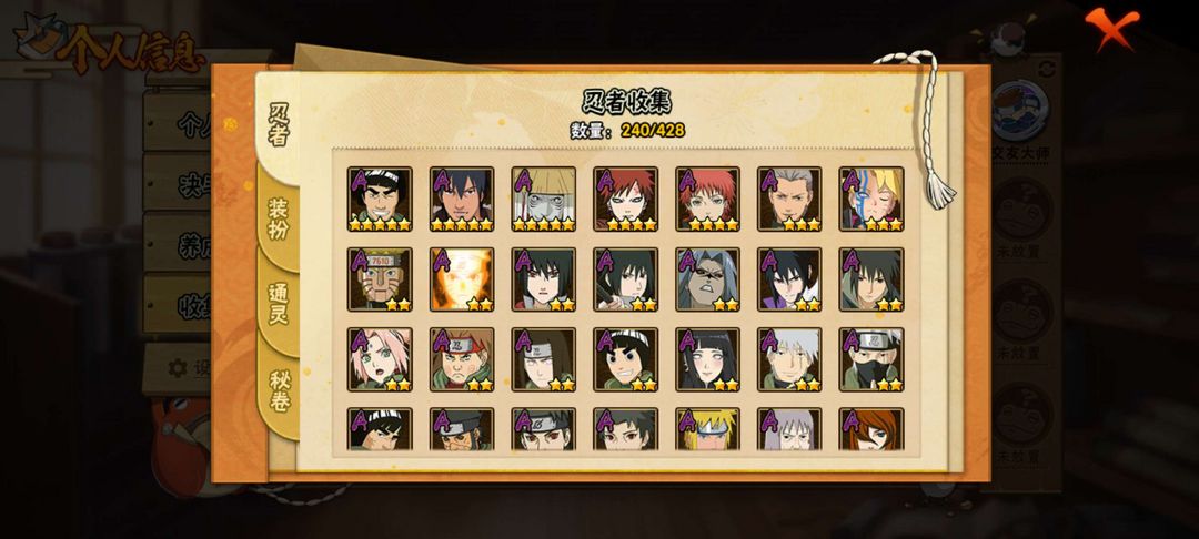 新高招基本都有,十尾带土迪达拉死二 白面 黄猿 紫狗 创立柱间 解斑 忍战雷 桃式各种点券a