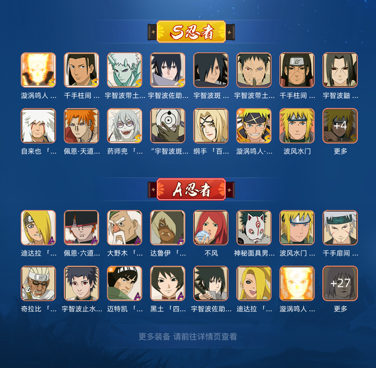 六道带土,迪达拉,创立斑,创立柱间等忍法帖,新春忍者,熊猫等氪金兽